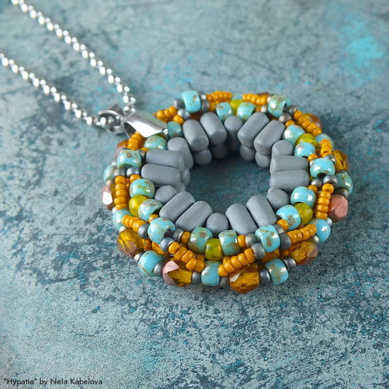 Donut-shaped, geometric pendant with Rulla beads MATUBO Rulla™ MATUBO 8/0 MATUBO 7/0 MATUBO 6/0